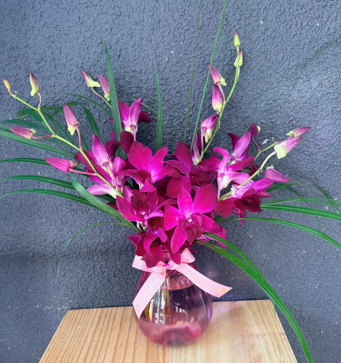 hot pink orchids in pink vase